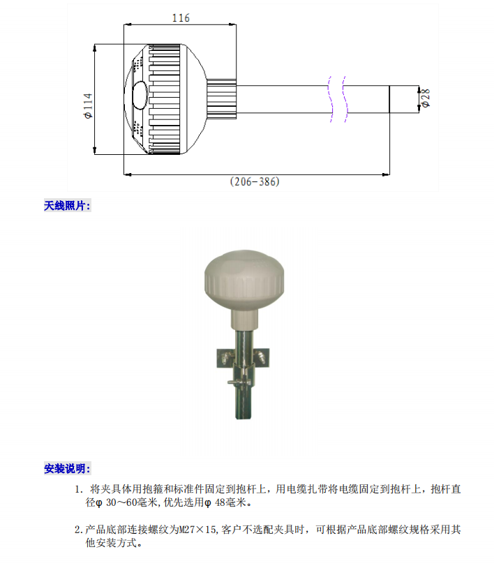 4、天線外罩采用耐候性良好,抗老化優(yōu)質(zhì)材料,適合長期野外環(huán)境下工作。